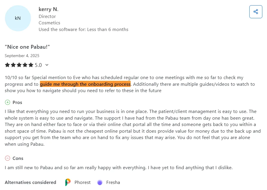 Platforms with flexible templates and recurring appointment options, like Pabau, will also make your daily operations smoother.