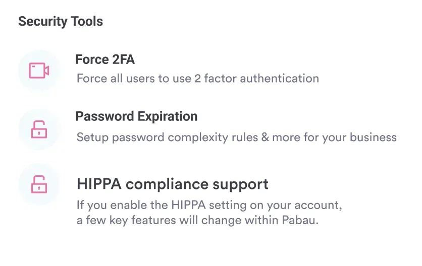 Pabau is fully GDPR and HIPAA-compliant and gives clinics strong tools to protect client data.