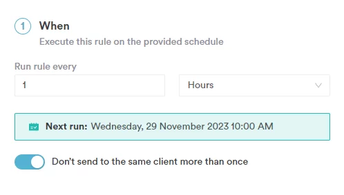 Give your automation a name and select how often you’d like it to send - every day, week, month or hour!