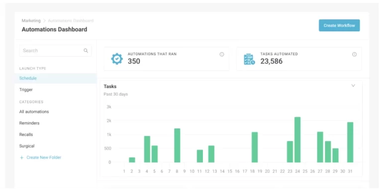 The automation feature covers a range of tasks, including appointment reminders, recall notifications, welcome emails for new customers, follow-up emails, and more. You have the flexibility to choose and configure automation based on your clinic’s workflow.