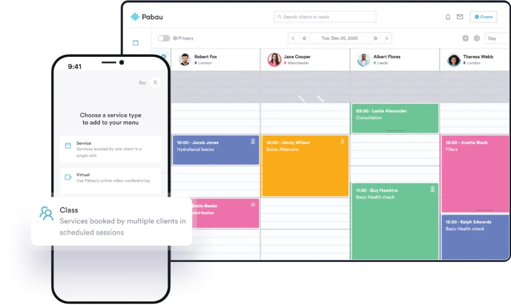 With Pabau’s Classes feature, you can schedule sessions, book attendees, send reminders, and collect payments — all from one system.
