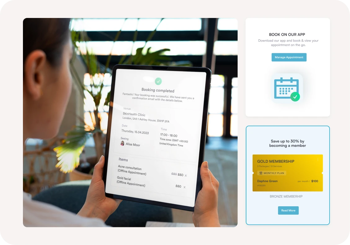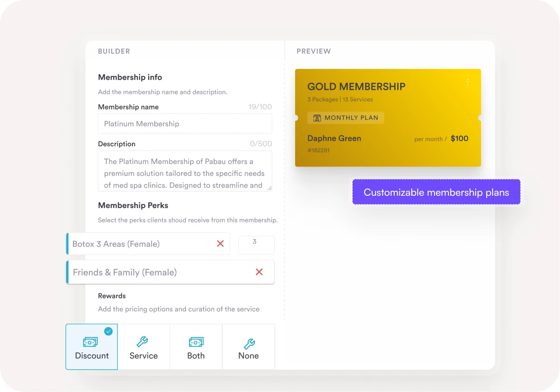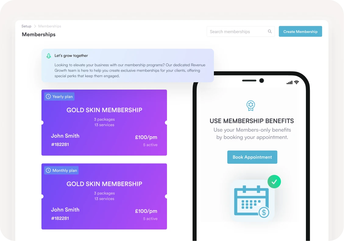 Membership plans allow clients to unlock free and/or discounted treatments by paying a monthly fee. Plus, you can customize the membership plans to suit your business needs (and a range of budgets).