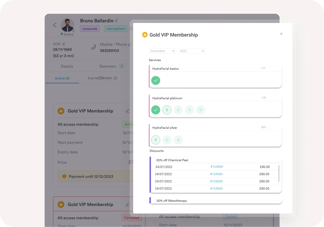 Build predictable revenue, increase client retention, and give clients more value with flexible memberships and treatment packages – all managed in one place with Pabau.