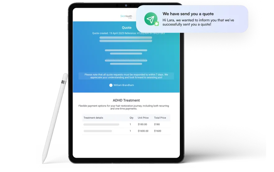 Quotes and intake workflows capture prospective patients seeking ADHD diagnosis and move them toward their first assessment — so inquiries don’t sit unanswered.
