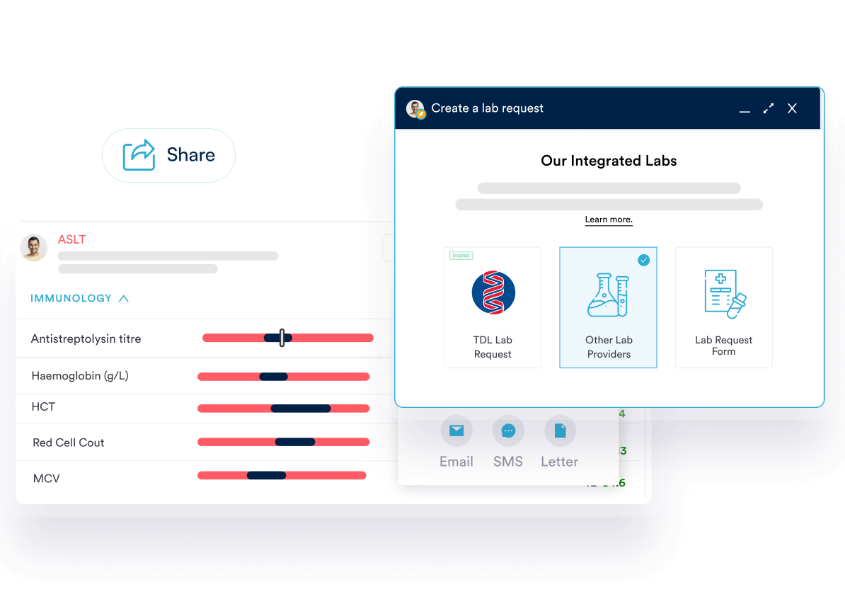 Order lab tests from one of our integrated partners without leaving the patient card. Results feed directly into the patient chart.