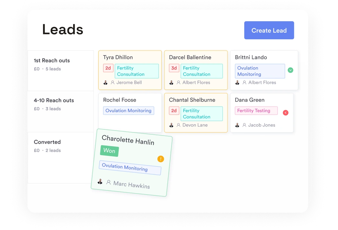 Monitor enquiries, conversion rates, cycle outcomes, and revenue in one place.