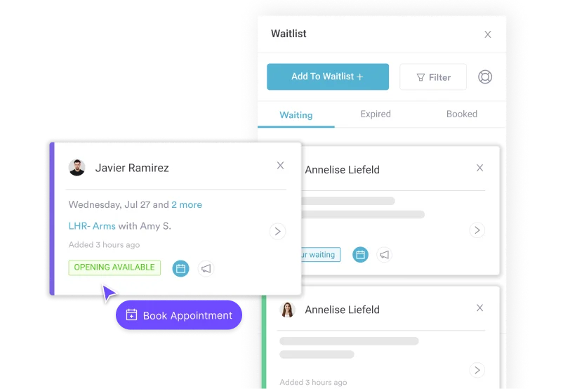 When cancellations happen, waitlisted clients are notified automatically.