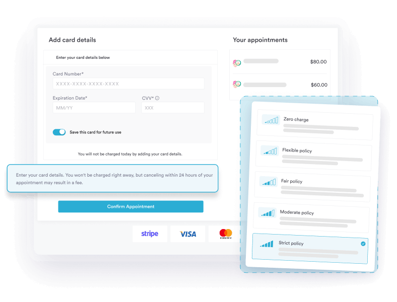 Collect payments and deposits at booking so late cancellations don’t eat into clinic revenue and cash flow stays stable.
