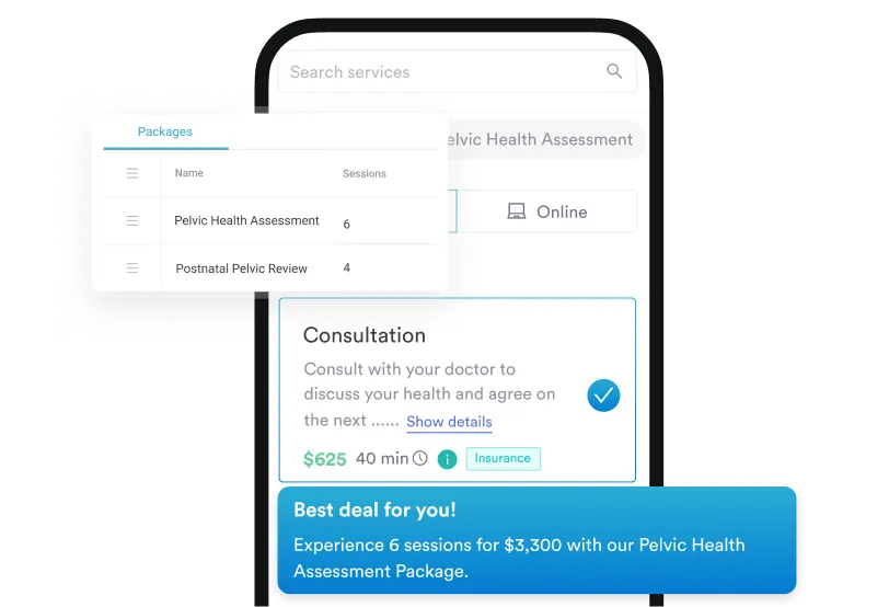 Sell and track blocks of treatment for ongoing pelvic health therapy, automatically deducting sessions and notifying clients when it’s time to renew.