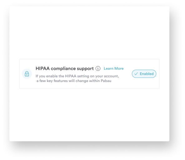 A software solution alone won’t make your business HIPAA compliant. We support HIPAA compliance with robust tools such as authorized personnel access, audit logs, and data encryption and secure storage. However, you must also implement the appropriate policies and procedures within your organization to ensure you comply with all HIPAA requirements.We also have a HIPAA compliance toggle that enables you to activate HIPAA compliance support in Pabau. Read more here: https://teststaging.pabau.com/hipaa-compliance/