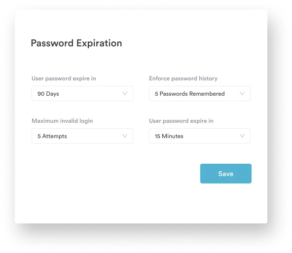You can ensure password security by setting expiration frequency, enforcing password history, limiting invalid login attempts, and defining lockout duration to enhance account protection.