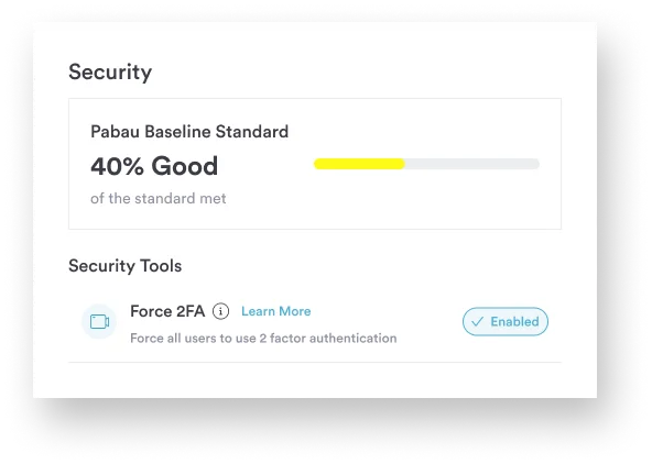 Our security rating score evaluates your system setup by analyzing the security features you have activated in Pabau. It’s a quick way to help you identify areas for improvement.